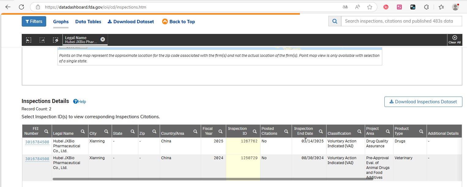 Following the inspection, the FDA issued an official Establishment Inspection Report (EIR), confirming that Hubei JXBio’s operations meet the agency’s high standards for quality and compliance.